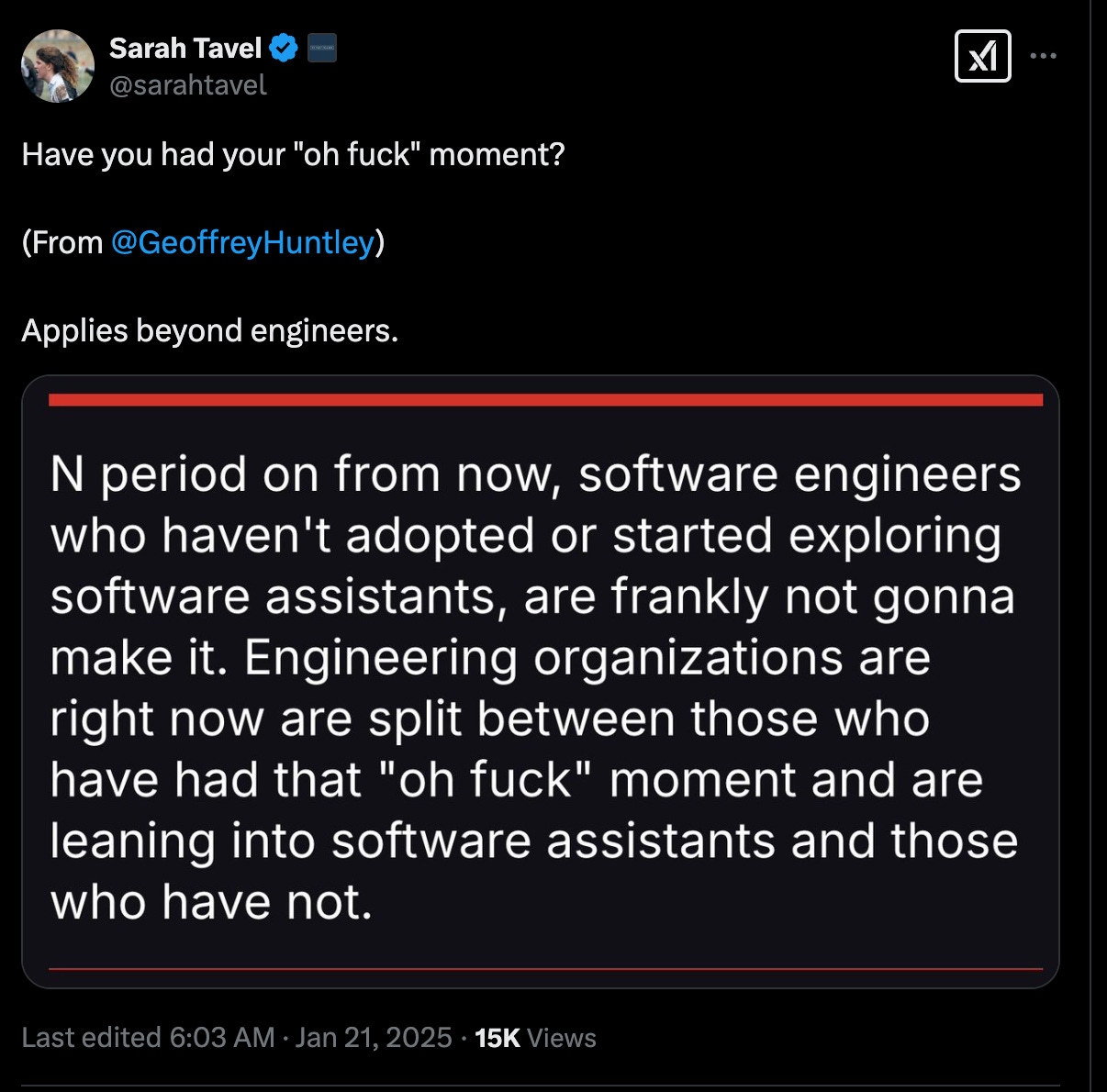 Once you have your “oh fuck” moment, you won’t look back. In fact, you’ll start to wonder how you ever lived without AI at work.