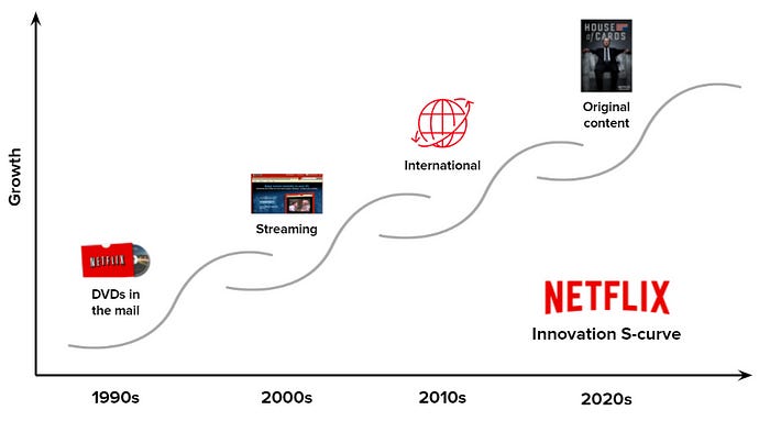 Take Netflix. Their business has had many distinct chapters that accelerated growth as the core business plateaued.