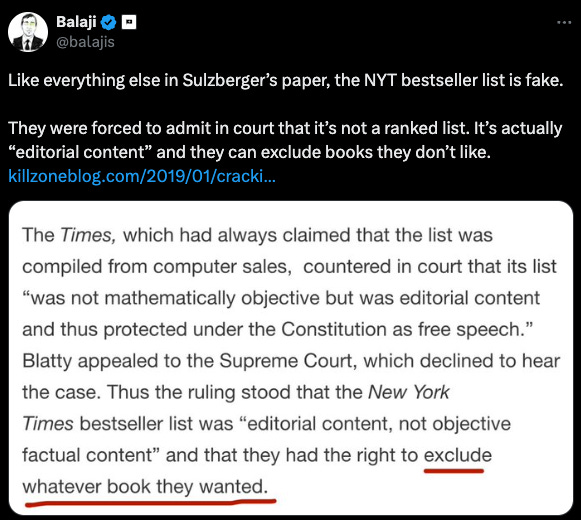 There’s a lot of garbage on the NYT best seller list, which makes sense because it’s not actually a best seller list…