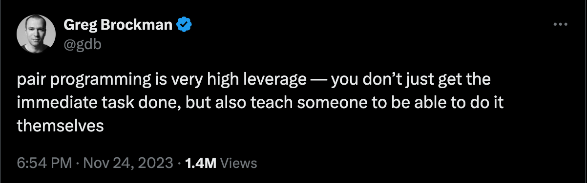 Anyone who was pair programming with Greg is surely a 10x engineer.